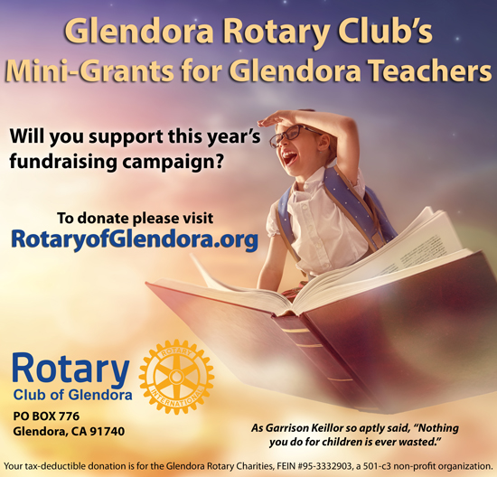 Welcome to the Rotary Club of Glendora! We’re a vibrant group of local professionals and community leaders dedicated to making a positive impact right here in Glendora and beyond. Whether you're passionate about community service, networking, or simply want to give back, we invite you to check us out and see how you can get involved. Explore our upcoming events, learn about our projects, and discover how Rotary’s commitment to "Service Above Self" can be a rewarding experience for you. Join us and help make a difference in our community!